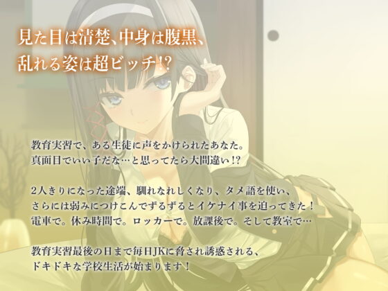 流石にヤバさがわかってる主人公は一線を超えないように頑張りますが、結局連絡先を交換してしまい、抵抗できない状況で逆痴漢されてしまい、なし崩し的にどん流されてしまいます。ませた女の子にいようにされてしまう過程は中々良いものでした。 一見清楚な女子高生が実はビッチでことあるごとに教育実習生のあなたを誘惑しに来るというなんとも背徳感のある設定になってます。