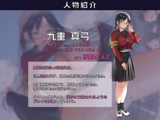 トラック4とトラック6に2回アナルセックスがあるため、女性のケツがお好きな方にお勧めです 風紀委員のくせにでっけー乳といやらしい体で周りに劣情を催させて自分から風紀を見出している無自覚オナホ女にたっぷり生指導を施してあげましょう。最初のうちは抵抗していた風紀委員ちゃんですが先生(リスナー)からの指導でどんオナホとしての才能を開花させていきます。