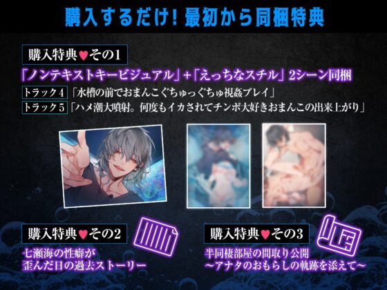 ねこまたみさ先生のどえろシナリオとちゅっぱさんのどすけべSEを合体させたらもうそこには約束された最高のすけべしか生み出されんのよ。誰でもわかる錬金術。これからもよろしくお願いします。 最初から不穏な空気がムンのカイくん。金魚さんへの微笑ましい(?)語りかけなのに、どこか少しおかしい…ヒロインちゃんへかける言葉からも、表現し難い「何か」がありました。突然の豹変と作品紹介にありましたが、表に出たのが突然だっただけで、この歪みはずーっとカイくんの中に存在したんですね。購入特典にあった歪んだきっかけから、着々と歪みが成長を遂げたようです。優しいんだけど、何か燻るような微妙な違和感を覚えました。この怪しさを醸し出す演技はさすがのひらめさんです。