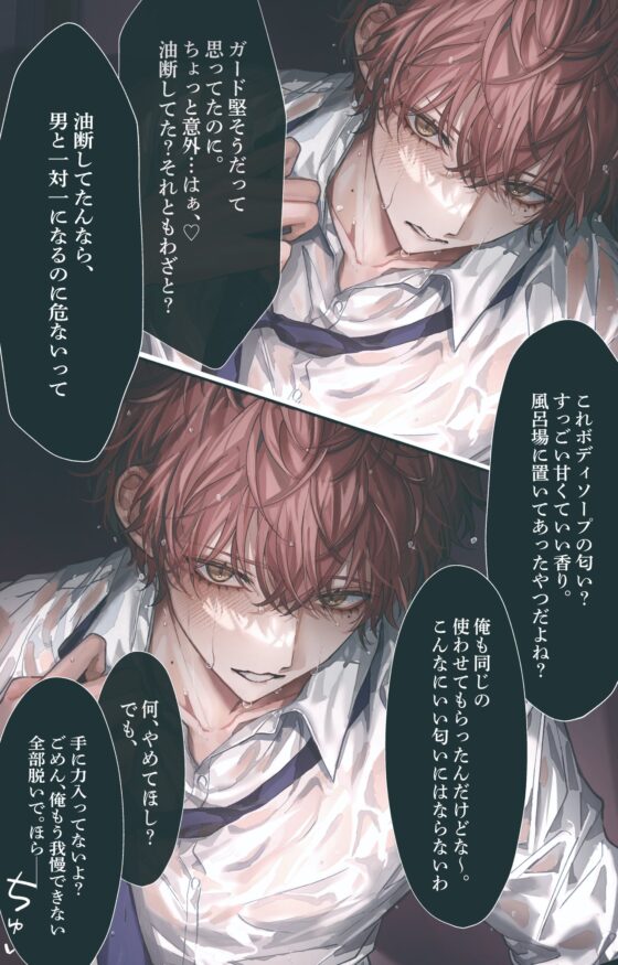 トラック1。ジャケットイラストそのま、忘れ物を届けに来てくれた悠人くんを迎え入れます。こんな風に水も滴るい男に来訪されたら、心臓持ちません。